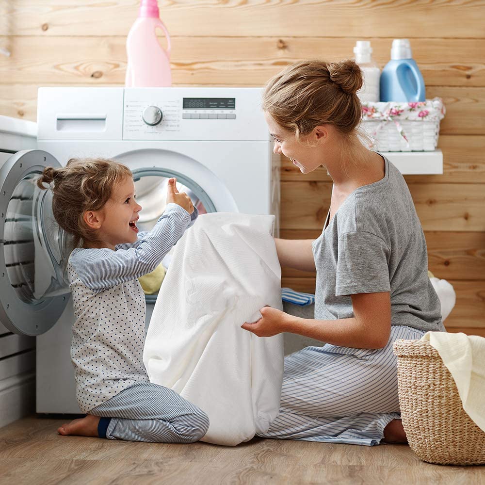 - EASY CLEANUP, TAILORED FIT, NOISELESS & COOLING FEELING ๐ The cover provides a unique heat managing ability that reacts to temperature fluctuation as you sleep for all-night comfort and the softness lets you sink into your mattress without any unnecessary noise or ruffling. Enjoy your quiet night! The stretchy skirting and 360° grip conform to your mattress for a flawless all sides fit. Plus the cover is machine washable.